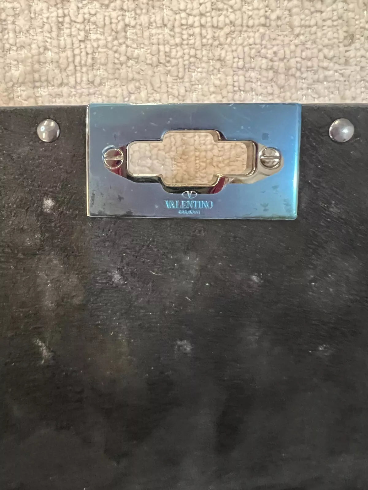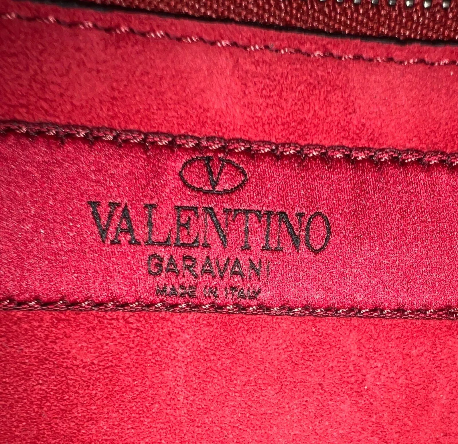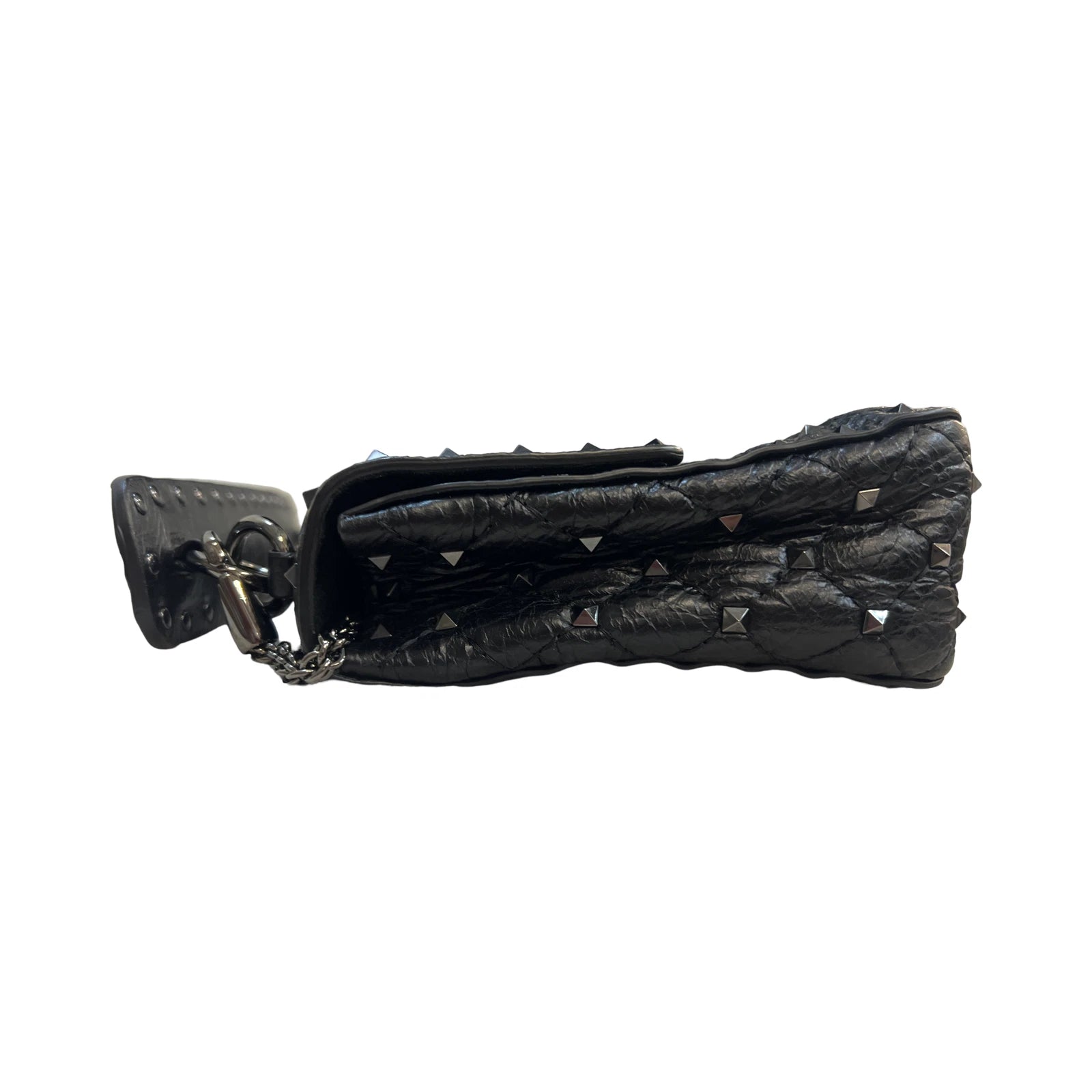 VALENTINO GARAVANI Craquele Nappa Medium Rockstud Spike Shoulder Bag Black Purse